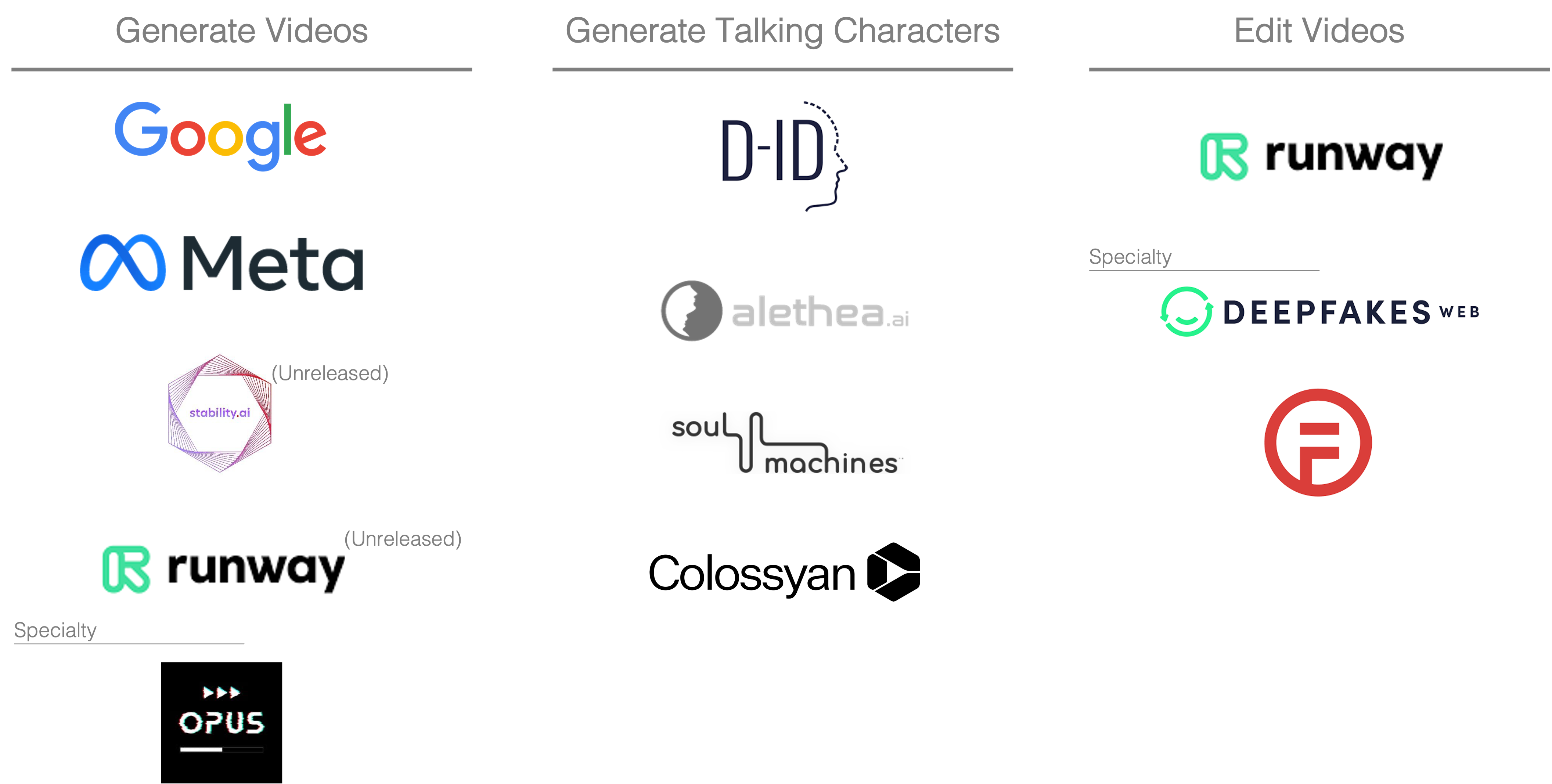 I’ve curated a set of products that simplify and empower live-action or animated video creation and transformation. Three categories emerge: 1) Generate Videos, 2) Generate Talking Characters, and 3) Edit Videos. Exciting times are ahead!